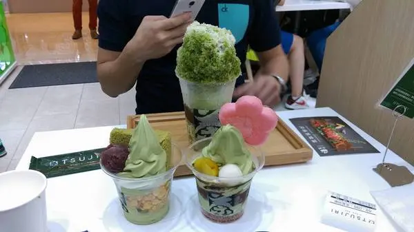 西元1860年 「辻(ㄕˊ)利」於京都宇治創立, 後又於北九州小倉, 京都祇園, 岡山等地設立分店~西元1923年 北九州小倉 辻利茶鋪 成為 辻利喫茶文化的先驅, 嚴選宇治本家工廠最高級抹茶原創各式美味飲品及餐點, 讓顧客能體驗抹茶的各種可能性~而位於台北的新品牌 TSUJIRI辻利茶鋪 則為他們拓展海外市場的第一站.今天閒閒跟小魚就來到位於信義微風4F的 TSUJIRI辻利茶鋪 享用一下這鼎鼎有名的辻利抹茶~後來在台北統一時代店, 忠孝SOGO店外帶過幾次他們的霜淇淋, 這次倒是第一次來信義微風店內用餐, 所以當然要來點不一樣的囉!TSUJIRI辻利茶鋪 目前在台北的三家門市只有信義微風店有座位可以在店內用餐, 其他兩家只提供外帶喔!位於信義微風4F的辻利茶鋪雖然有用餐空間, 但是座位很少, 大概只能容納約12人同時用餐.在4F這大多是擁有超大用餐空間的餐廳中, 他們的空間真的小得可憐~所以在熱門時段想好好享用抹茶套餐可得等上好一陣子.我們來這天是週日下午3點多, 運氣蠻好的剛好有位子就直接進去吃了.但我們剛坐下沒多久外面就已經開始排隊了~櫃台櫥窗展示了很多誘人的抹茶霜淇淋跟抹茶刨冰, 每一種看起來都好好吃的樣子~價位也不會比較貴, 跟在日本吃的差不多喔!而且不用去日本就可以吃的到, 真的太幸福了~店內還有販賣一些抹茶相關商品, 喜歡的可以順便帶走喔~用餐空間雖然小, 但木質簡約日式風格的設計, 給人感覺很舒適, 還是蠻吸引人進來坐坐的~這裡點餐有分店內用跟外帶, 內用的話要先自取菜單及號碼牌後, 找尋空位入座,決定好餐點後, 再持菜單及號碼牌上的點餐卡至櫃台排隊點餐~所以這裡是不收服務費的~其實閒閒跟小魚來吃時根本搞不清楚狀況, 就直接在門口跟服務人員說要用餐, 然後他就帶我們進來了.我們坐下後, 服務人員就自動拿菜單跟號碼牌給我們, 然後跟我們說明要自己到櫃檯點餐, 用餐時間限制90分鐘, 然後限定內用餐點不提供打包, 用完餐後餐具要放置回收台~我想可能大部分人第一次來都像我們一樣傻傻地搞不清楚狀況, 所以他們服務人員只好自動幫我們服務及說明一下啦!喝水可自取, 回收台在下面.這裡也有免費WIFI喔!趕快來點餐吧!如果照片看不清楚, 請點以下連結:Menu初夏新辻感~這是辻利茶鋪跟桂冠湯圓合作推出幾款餐點, 還蠻熱門的, 販售期間只到6/30, 我們也來吃吃看吧!其他還有午茶套餐, 冰沙, 霜淇淋, 抹茶刨冰, 白玉套餐, 聖代, 蕎麥麵...種類還蠻多的耶!~🔽辻利刨冰(抹茶) NT$185這是熱愛霜淇淋的小魚必點的刨冰~上面抹茶霜淇淋吃起來有淡淡抹茶清香及些微抹茶苦味, 但愛抹茶的人就特別能享受那清甜中帶著的微微抹茶苦味啊!加上那如絲般滑順口感, 入口即化的清甜, 讓人一吃就上癮~下面的抹茶刨冰則清甜中帶有淡淡抹茶香, 入口冰涼茶香更是沁入心脾, 讓人立馬感覺暑氣全消, 真是夏日冰品首選啊!抹茶刨冰搭配香甜細緻的紅豆泥一起吃最是對味~宇治金時~抹茶冰中絕不能少的白玉則是口感非常Q彈扎實, 滑潤有嚼勁, 真是棒啊~美中不足的是今天的栗子有些太硬, 口感不怎麼好喔!小魚最愛~(小魚邊對著鏡頭笑邊迫不急待的問: 拍好了嗎?我可以吃了嗎?)🔽辻分圓滿套餐 NT$320 (期間限定到 6/30)這就是近期熱門的跟桂冠湯圓配合推出的辻分圓滿套餐, 期間限定只到6/30, 想吃的人手腳要快喔!裡面包含:抹茶/焙茶/玄米茶(擇一), 抹茶冰淇淋, 抹茶起司蛋糕, 最中+桂冠小湯圓, 抹茶生果凍+紅豆泥+栗子是不是看起來好豐富好誘人呢?這一套吃下去就幾乎把店內招牌都吃過了呢!只不過是把原本放在最中裡的白玉紅豆泥改成桂冠小湯圓~日本人最厲害的就是可以把食物擺的美得像幅畫一樣~看著眼前這一盤美麗又風雅的抹茶冰跟甜點, 真讓人有一秒到京都的錯覺啊~一整碗抹茶淺綠的顏色非常宜人, 望著那一碗的抹綠會讓人有猶如置身嵐山清涼竹林中的感覺~捧起茶碗, 輕輕啜飲一口, 享受茶香撲鼻的清新, 冰涼的抹茶透著微微的苦味在口中漾開, 入喉則馬上有回甘的感覺, 讓人倍感舒爽清涼, 齒頰留香~而且這一碗抹茶尺寸還不小喔!絕對可以讓你搭配甜點慢慢享受一個風雅清涼的下午茶時光~再來嚐嚐這粉嫩櫻花最中跟她裡面藏著的桂冠小湯圓吧!粉嫩櫻花造型本就非常吸睛, 尤其是女孩們根本無法招架, 一定非點來吃不可吧!這回把原本的白玉+紅豆泥, 改成桂冠小湯圓造成話題, 不知道吃起來滋味如何呢?我們把最中整個合起來吃, 最中口感偏脆, 搭上裡面的桂冠小湯圓(有黑芝麻跟花生兩種口味), 軟綿黏糯, 還帶有黑芝麻跟花生香~閒閒跟小魚吃完後, 還是覺得~如果是搭原來的白玉+紅豆泥口感還是最棒啦!我想吃過桂冠小湯圓的人都知道, 不加任何內餡的小湯圓還蠻Q的, 但是加了內餡整個湯圓就偏軟了, 少了QQ的口感, 我們真的不愛啊~真是抱歉了!!抹茶冰淇淋淡淡抹茶清香, 冰淇淋口感細緻綿密, 搭配上面的米果一起吃, 抹茶香跟米香整個充滿口中, 就是讚啊!抹茶起司蛋糕則是光看外表就非常誘人~吃起來口感相當扎實, 吃得出用料實在.濃郁的起司中透著淡淡的抹茶香, 些微抹茶苦味反到中和了起司蛋糕的甜膩, 底部的酥皮也非常香酥好吃, 是一道相當有質感的蛋糕喔!抹茶生果凍則是今天所有甜點中抹茶味最濃郁的, 相對的苦味也最明顯~這就是為什麼旁邊要放上紅豆泥跟栗子的原因了.搭配一
