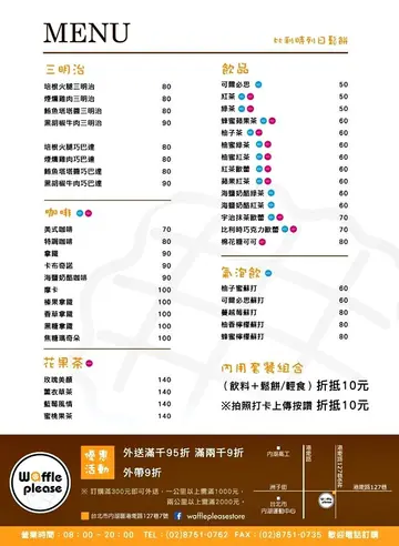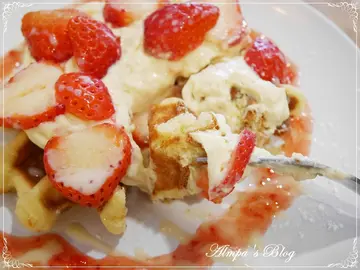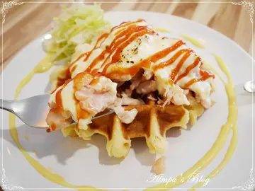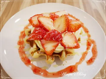 在內湖港墘站附近,有一群大男生合夥開創了這間:Waffle Please 比利時列日鬆餅!平平七年級生,我還比人家早出生....看著他們勇敢追逐夢想,把喜愛變成工作,真的讓姊姊我好生欣慰呀~!(拭淚但....你以為我會因此好話說盡?!那可就大錯特錯了!我這人呀,向來毫不掩飾自己的機車、和我扭曲的人格相處得非常融洽且和諧~坦白說,接獲 Waffle Please 比利時列日鬆餅 邀稿真的很開心!在眾多鬆餅中,撇開幾乎毫無技巧可言的美式鬆餅、最近還不退燒的日式厚鬆餅和只能算零食的一口小鬆餅....我最愛的就是這集:酥、鬆、脆、韌 於一身的比利時列日鬆餅了!但內心也默默的為老闆捏了好大一把冷汗~你們真的知道自己羊入虎口、送上門來嗎?就像我的分類標籤一樣,對於食記,我可是百分之五千萬的絕對認真喔!有鑑於我也吃過許多網路好評如浪潮,百聞一見想翻桌的大小各式餐廳....關於食記,好吃的:我一定寫;難吃的:更要寫! 是不是人格夠偏差了!位在內湖,港墘捷運站出站約五分鐘路程的Waffle Please 比利時列日鬆餅,於2014年10月開幕,是一間很年輕的店!附近辦公大樓林立,若不能親自過來內用、外帶;同事們相揪打電話外送也不錯!外帶、外送的話,我個人推薦不加料的比利時列日鬆餅,以免餡料的水分滲透入鬆餅,反而吃不出比利時列日鬆餅獨特的風味!請大家要注意呀!!玻璃門請往左"推"!禁止打牌、吸菸、外食、寵物,提供Wi-Fi。也因此在這裡下午茶,感覺非常愜意清幽~平時上班受夠了人聲鼎沸的喧鬧,來這裡放鬆平衡一下剛剛好!如果遇上好天氣,外帶鬆餅到附近公園散個步、野餐,感覺也非常享受~!可惜近日台北低溫陰雨呀~~~它也是我看過室內空間最寬敞的比利時列日鬆餅專賣店!你可以坐在吧檯,欣賞現烤比利時列日鬆餅的樂趣,也可以帶上筆電坐在窗邊消磨一下午~三五好友相聚下午茶,更不成問題!室內裝潢簡單不花俏、亦不過分可愛;男孩們也能大方走進來用餐。我倒覺得這樣簡單中帶著質感的裝潢,很符合比利時列日鬆餅在我心中的形象。也因為空間是這麼寬敞,亦有開放會議室租借的服務!空間可塑性很高!開會還有比利時鬆餅當下午茶,也太幸福了!外帶建議不加料,也有:原味、肉桂、海苔、柚香、杏仁、杏仁焦糖、杏仁巧克力 蠻多口味可以選擇。加料鬆餅則有:水果系列:香蕉 鮮奶油/卡士達、焦糖蘋果派、草莓 慕斯/鮮奶油/卡士達、綜合水果 鮮奶油/卡士達甜蜜時刻:巧克力 鮮奶油/卡士達、焦糖 鮮奶油/卡士達、花生醬 鮮奶油/卡士達、棉花糖創意鹹味:起士、藍莓起司、鮪魚玉米沙拉、燻雞起司冰淇淋系列:巧克力芭娜娜冰淇淋、草莓100%冰淇淋、繽紛水果冰淇淋想要另外加料也可以!還有限量的三明治、巧巴達系列;飲品的部分,比較特別的是除了咖啡、氣泡飲、茶飲,還有花果茶!內用套餐組合(飲料+鬆餅/輕食)折抵10元※拍照打卡上傳按讚 折抵10元海鹽奶酪咖啡認識我的人都知道,我每天至少要喝三杯咖啡;咖啡對我來說不是提神飲料,大多數時候無助於提神,而有益於心靈~幾乎沒有我不喝的咖啡,對我來說不喜歡的豆子、烘焙度也是一次味蕾的訓練學習。只是,這一杯,真的讓我喝不完....漂浮在咖啡上的這一層奶酪,是以鮮奶油打發製成;灑上海鹽、可可粉妝點得可人~但隨著時間流逝,不久就顯現出明顯的油滴感;原本入口滑順不膩的口感不再....稍縱即逝的美好更勝舒芙蕾....為何要這樣傷我的心~~~~終於,我人生中,第一杯喝不完的咖啡,在此,誕生....(大哭海鹽奶酪綠茶一樣在綠茶上面覆蓋一層厚厚的奶酪,灑上海鹽和綠茶粉,增添視覺和味蕾上的層次感。但也發生同樣問題....雖然飲品普遍是大多餐廳、甜點店的弱項,但有美味不搶味的飲品來陪襯,在餐食中亦是增色不少!棉花糖鬆餅向來我就不是螞蟻人,媽咪更是沒有甜點胃!但這道棉花糖鬆餅,真的大大顛覆了我們的想法!一顆顆雲朵般雪白的棉花糖,表面烤得微焦微黃的模樣,煞是誘人~淋上巧克力醬、撒上杏仁片和糖粉點綴,看著就很有冬日聖誕節的氛圍~熱呼呼軟綿綿的棉花糖,一叉起就是誘人口水失調的畫面! 誰受得了!本想說棉花糖這傢伙,冷了就轉乾硬,不耐拍照胡鬧玩耍~沒想到它是越冷越牽絲~!棉花糖依然軟綿綿的呀!!!!甜蜜蜜的,小朋友的最愛無誤!草莓卡士達鬆餅我蠻喜歡 Waffle Please 比利時列日鬆餅 的擺盤,簡單可愛就帶出各個品項的特色!現烤的比利時列日鬆餅,已分切成四等分,擠上卡士達圈圈後擺上盛開的草莓花,淋上一圈草莓果醬裝飾、來點煉乳、灑點糖粉~像極了一朵盛開的聖誕薔葳~嬌豔的楚楚動人!很多人都說過: Waffle Please 比利時列日鬆餅 的感覺跟某鬆餅很像!我只能跟你說:地球就是這麼小!那間鬆餅正好是我截至目前的人生中吃到最好吃的比利時列日鬆餅!在比利時列日鬆餅本身的組織架構上,酥、鬆、像麵包般吃得出筋度的Q韌度都有了!唯獨入口咀嚼時,珍珠糖的脆度不那麼明顯!無法阻止餡料水分帶來軟爛的宿命....因此,我心中的第一名寶座,依然是由某鬆餅穩坐;但讓我不得不好好稱讚的是:Waffle Please 比利時列日鬆餅的卡士達醬!微Q帶彈的口感、濃郁不死甜的風味和綿長的香氣,更勝一籌!即使卡士達醬的水分讓比利時列日鬆餅表面變得濕軟,也無損它的美味!燻雞起司鬆餅在鬆餅店中,要出現鹹食的品項,確實不容易!也只有這幾個大男孩開創的 Waffle Please 比利時列日鬆餅,有這麼多鹹