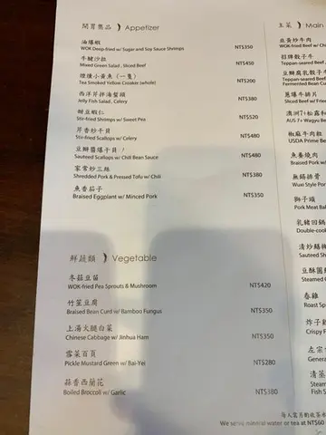 20190920內湖在敬業二路這一代有不少看起來很低調奢華的餐廳 在教父牛排的這一條路上有另外一家聽說也是教父牛排鄧有葵親兄弟開的新中式餐館 wok臥風閣兩兄弟也太有才華了吧一個是中式餐廳 一個是西式牛排館 wok 餐廳名稱叫做臥風閣餐廳整體的感覺就是很優雅我們是定了平日中午的包廂桌菜先來看看上菜吧在等大家陸續到齊的時候 我們有先請服務生上了第一道招牌蔥油餅先墊墊肚子油爆蝦上菜的時候超噴香的 蝦肉也很新鮮Q彈牛腱肉和生菜沙拉的組合 非常的特別 沙拉上也點墜腰果 是我很喜歡的西洋芹拌海蜇頭 這也是一道開胃涼菜口感很爽脆哇 豪華的來了 超大一顆的煎干貝上面還點綴著魚子醬 蝦仁青豆雖然口味清淡 可是這蝦球超大顆的 很有誠意 中場的時候 服務生上了紅豆赤飯 好特別喔 紅豆煮成的米飯 甜甜香香的我喜歡經典的中式湯品 醃篤鮮 用豬肉火腿還有白菜熬煮出來的湯頭 很甜很好喝 這時候又有大菜來啦 超大一份的無錫排骨肋排的部分燉煮得很爛 搭配甜甜的醬汁 一入口就骨肉分離了哇這個視覺上效果超震撼的 有大片冰花的煎餃 不知道從什麼時候開始 煎餃不去邊平常這種類似餅乾的口感 也蠻有樂趣的炸子雞也是外酥內軟 這時候又上了一道清淡的湯 三絲湯有竹筍絲還有菇類 等等沒想到在這邊也可以吃的到牛排耶 而且口味跟水準都很好 牛排帶有粉紅色的光澤喜歡牛排的不要錯過喔飯後也有附上水果 甜點的部分 這是橙汁巧克力湯圓 ㄟ這個我就有點吃不懂了...太跳痛了啦二樓包廂的座位和椅子都很舒適 也附上單點菜單給大家參考一下 看了一下菜單 發現餐廳提供的菜色蠻多元的想要小點 小菜或者是大菜類都有應該也蠻適合家族或商務聚餐的推薦給大家囉 wok臥風閣台北市中山區敬業二路69巷59號1號 02 8502 6778…查看更多