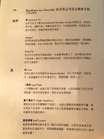 認識畬室巧克力工作坊,一開始是自於網路店面,直到近期才發現了已成立了實體店面。實體店舖位於仁愛圓環巷弄中,辦公大樓裡的暗色系店面更顯低調。具有濃厚法式風格的裝潢,簡潔卻極度有質感,雖走暗色系,但仍然給人一種溫暖的感覺。大多客人以外帶為主,座位並不多。每個牆面都有著溫蘊的沈靜之美,不富麗堂皇,但印象深刻。甜點皆已巧克力系列為主,種類上的選擇並不多。除了巧克力派以外, 還有多樣式的純巧克力,也有精緻的包裝送禮自用皆宜。兩個人用餐,共點了三道甜點和一杯飲品,一種準備被甜點淹沒的概念(笑)巧春NT.200師傅現煮後,自鍋中直接倒入杯裡。選用三種不同產地的巧克力,不添加可可粉,現煮而成的法式熱巧克力,濃稠絲滑的入口,是在台灣少見的味道與口感。檸檬塔NT.140點檸檬塔純粹是怕巧克力帶來太多的甜膩,想要中和一下,結果不但起了解膩的效果,還不小心戀愛了。塔皮烤得香酥脆硬,內層卻能如此濕潤,微酸微甜,入口後還能感受檸檬清香回味。紅水烏龍NT.180以來自瑞里的冬茶,不加多餘的香料調味,佐入巧克力塔中,茶香巧克力香在舌間的不同段藴育而出,若說這不是把巧克力發揮得極致,可能再無能讓我魂牽夢縈的了。亞爾薩斯之森NT.140.脆皮法式泡芙中心藏著覆盆子果凍,整體覆盆子味道稍稍蓋過了巧克力,泡芙太鬆軟不好切,口感不佳。推薦順序:巧春>紅水烏龍=檸檬塔>亞爾薩斯之森在台北嘗過許多法式甜點名店,畬室必定是我會一訪再訪的好店,不論從裝潢的法式簡約,氣氛中的沈靜,還是餐點上的精湛,不只可圈可點,而是讓找到了當初在法國享受甜點那顆真切的心。若有空閒就來畬室喝杯法式熱巧克力吧!查看更多