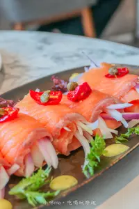 奶油燻鮭魚蘆筍燉飯佐炆烤香料鮮鮭