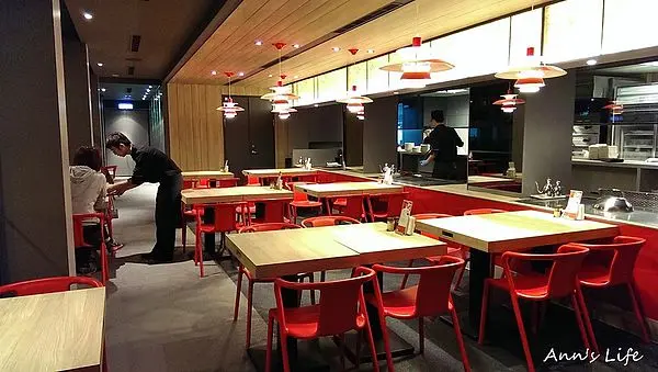 紅色是hot7的品牌顏色,上至招牌下至裝潢色調都以搶眼的鮮紅色為主軸,基隆路分店的店面是一個狹長空間,一訪的時候雖然沒機會吃到,但店長還是很親切的回答我們的問題,約可以容納60人的空間,以hot7正火紅的狀態,要搶訂位手腳真的要快,開幕第一天一個月內熱門時段就訂位全滿,同事想去吃只能狂打電話預約冷門時段或是現場排隊,此時真慶幸我們趕在試賣期還沒太多人的時候就搶頭香,也算有先見之明吧,嘿嘿。