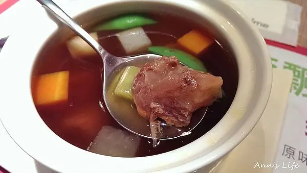 比起山藥芡實排骨湯我更喜歡這碗和風牛筋清湯,牛筋燉煮到軟化口感極佳,清澈的湯頭因為有了大量紅白蘿蔔、甜豆......等一起精燉,喝的到蔬菜的自然甘甜和牛筋精華,後來同事去用餐要我提供推薦清單,我強烈建議她選牛筋清湯,果然也得到好評價,要能兼顧清甜和醇香,這碗湯實在表現不俗。