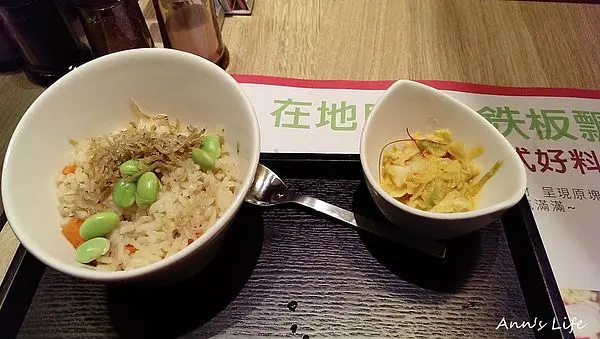 怕主餐份量不足,再送上魚香炊飯填飽肚子,以柴魚高湯拌炒吻仔魚和高麗菜、洋蔥、紅蘿蔔、毛豆等鮮蔬,米飯濕軟而味道清淡,重口味和重視米飯粒粒分明的人可能會比較偏好油香炒飯,但注重健康養生的人應該會欣賞這裡的炊飯。黃金泡菜倒是不錯,我一向喜歡黃金泡菜勝過一般韓式、台式泡菜,南瓜泥和大蒜醃製的泡菜就是有股迷人的魅力。