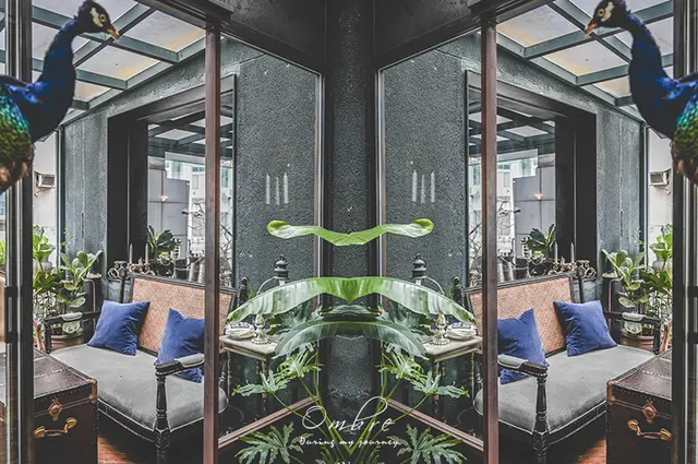 餐廳裡有個半戶外座位區,宛如一個小包廂可以不受外頭的干擾,門口放了一隻吸睛的孔雀站崗,很難讓人忽視它的存在(笑),因為相當逼真,我還觀察它到底是不是標本?