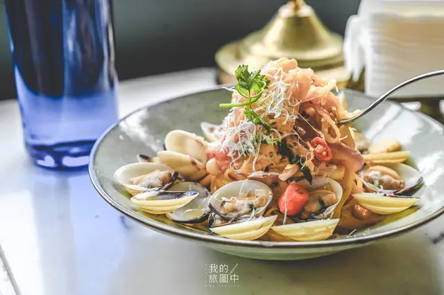 加東叻沙是來自新加坡的料理,或許是加了椰漿的關係吃起來有奶油白醬的甘甜滋味,卻又沒有白醬那麼濃郁,整體來說較為清爽又開胃,第一口只感受到微微的辣度,連續吃了好幾口後,辣味會從嘴裡由內而外的擴散出去,讓我不禁想喝飲料來降低辣度(笑),不過對於平常不吃太辣的我來說,還算能接受的範圍之內。