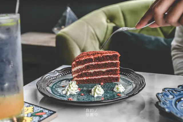網路上蠻多人推薦紅絲絨蛋糕,我也二話不說點來試試,店員表示是使用巧克力和鮮奶油製成,並且再染色,所以本質是塊巧克力蛋糕,如果沒有詢問的話,我還真的吃不出來是巧克力蛋糕(笑)。我覺得吃起來甜度很剛好,蛋糕體則非常的綿密扎實,女生們應該都會很喜歡。