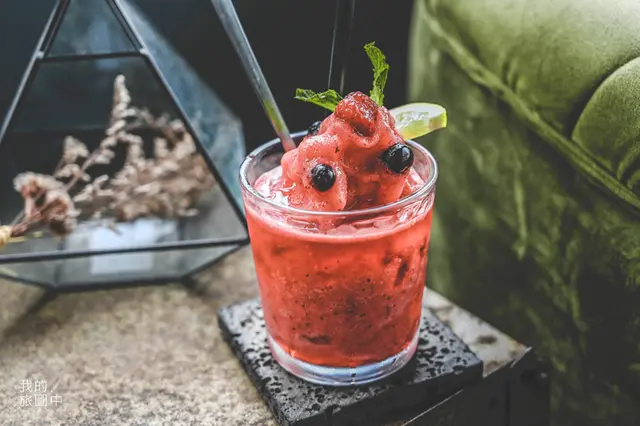 因為當天天氣又回溫了些,所以我們點的飲料都非常有夏天的感覺,冰沙上頭擺了幾顆莓果作為點綴,很讓人賞心悅目,喝起來酸酸甜甜的很清爽,要特別注意冰沙融化的非常快,建議盡快喝完。