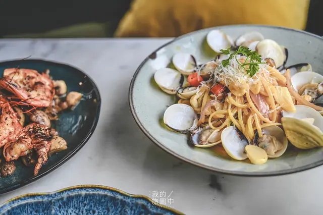 加東叻沙是來自新加坡的料理,或許是加了椰漿的關係吃起來有奶油白醬的甘甜滋味,卻又沒有白醬那麼濃郁,整體來說較為清爽又開胃,第一口只感受到微微的辣度,連續吃了好幾口後,辣味會從嘴裡由內而外的擴散出去,讓我不禁想喝飲料來降低辣度(笑),不過對於平常不吃太辣的我來說,還算能接受的範圍之內。