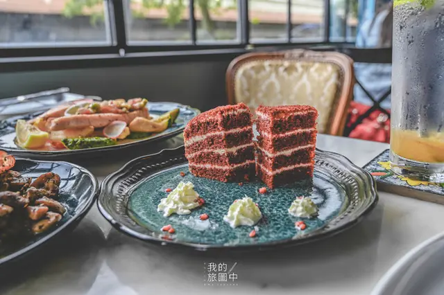 網路上蠻多人推薦紅絲絨蛋糕,我也二話不說點來試試,店員表示是使用巧克力和鮮奶油製成,並且再染色,所以本質是塊巧克力蛋糕,如果沒有詢問的話,我還真的吃不出來是巧克力蛋糕(笑)。我覺得吃起來甜度很剛好,蛋糕體則非常的綿密扎實,女生們應該都會很喜歡。