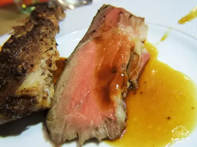 ▲『香格里拉台北遠東國際大飯店 遠東Café 自助餐廳』這道牛排以獨特的香料醃肉,又以低溫90度烘烤,將牛肉的精華鎖在裡面,一咬下去牛肉的香、嫩、軟開門見山直接了當地在嘴裡宣示霸權,滿足挑剔的舌頭、鮮嫩多汁的牛肉與紅酒醬真是太令人滿足了~