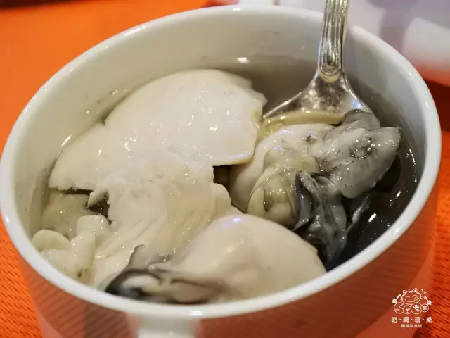 在這裡最讓人驚豔的就是這海鮮湯了!肥美的蚵仔、新鮮的蛤蠣與軟嫩的鱸魚,一喝下去所有海鮮的鮮甜都在嘴巴裡翻騰飛滾,彷彿聽見浪聲澎湃激昂,這實在是太令人感動了!!蚵仔也非常的巨大肥美,一咬下去軟嫩鮮甜,