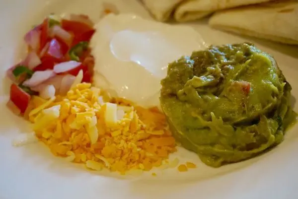 分別為酸奶,酪梨醬,青,紅椒,洋蔥和起司