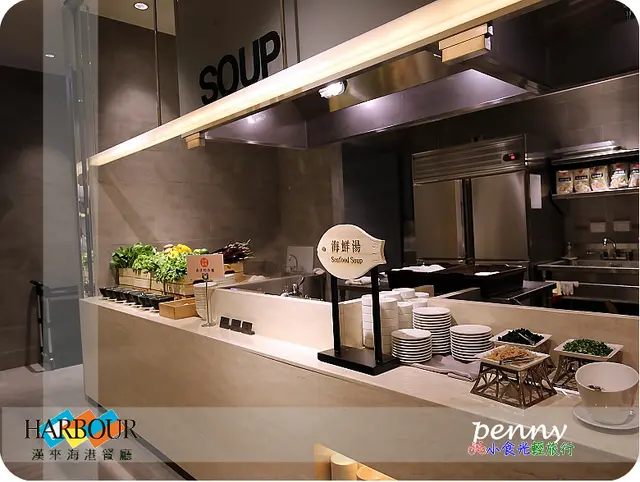 先帶大家看一下餐廳的設計和各項的自助吧台,吧檯和座位區交錯設置的方式