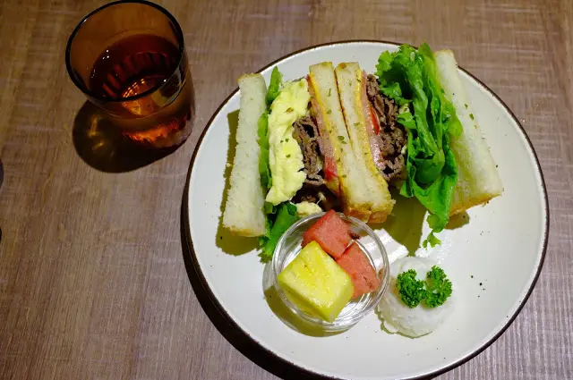 燒牛肉三明治 - 很豪氣的使用霜降牛肉在三明治的料理上,而且滿滿的蔬菜和自製土司整個就是爽快,牛肉在適當烹煮後依然帶有肉香和少許肉汁,大口吃很滿足。