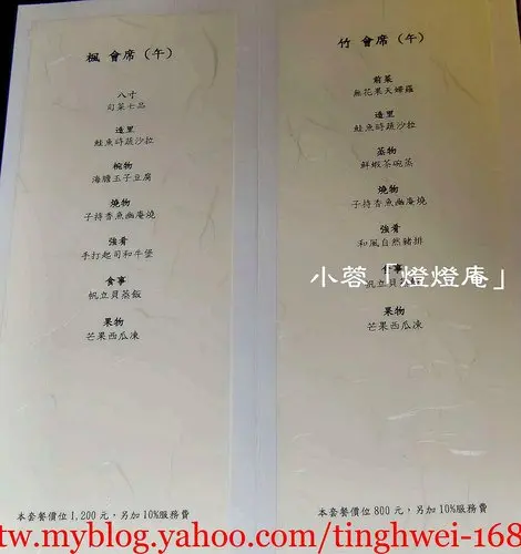 而小芳則點了「楓」會席午餐NT$1200.- 加10%