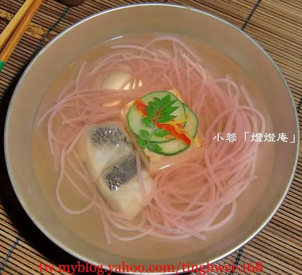 粉紅色的麵線好漂亮啊~