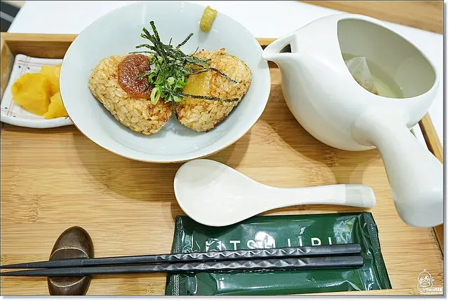 沒想到將新鮮的清香玄米茶淋上剛烤出爐的味噌飯糰,再佐以青蔥及芥末增添味覺層次的吃法可以這麼美味,
