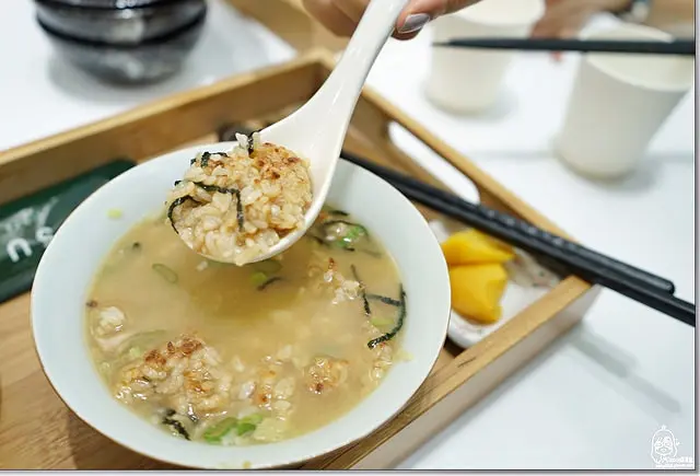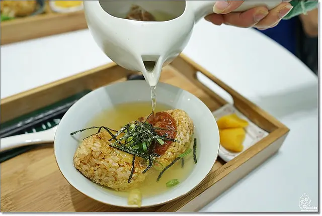 烤的脆香的飯團與鹹香甘甜的味增醬淋上清香玄米茶,層次豐富,濃郁中帶著清新茶香。