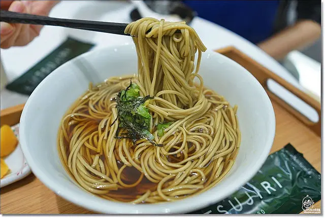 綠茶蕎麥麵口感很Q,帶著淡淡綠茶香的清爽口感,非常適合夏天。
