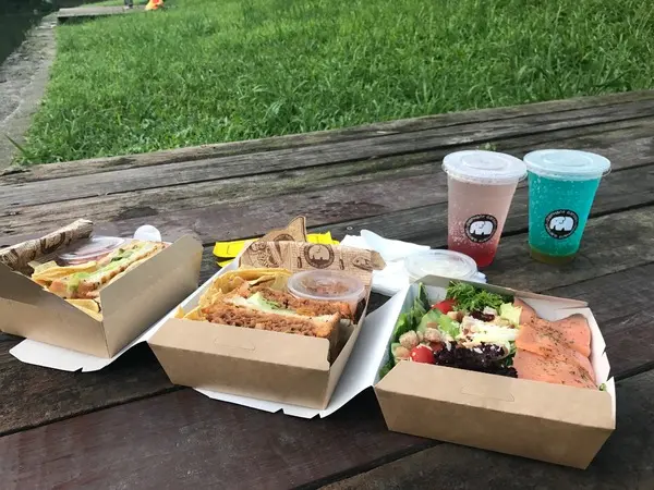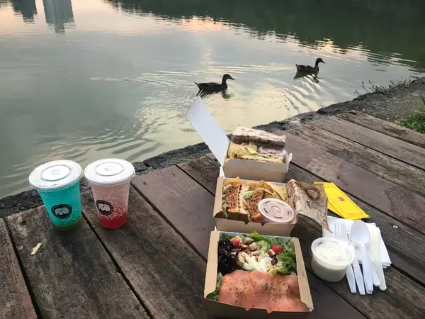 所以我們把餐點外帶出來,到對面的碧湖公園用餐~