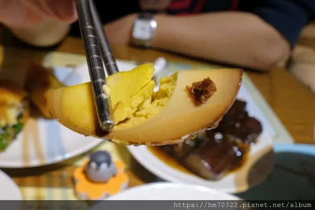把鏡頭拉近觀察魯蛋的顏色,想畢大家都看得出來滷得時間夠久,接近蛋黃的部份也是呈現淺咖啡色