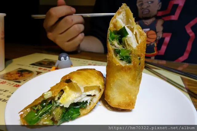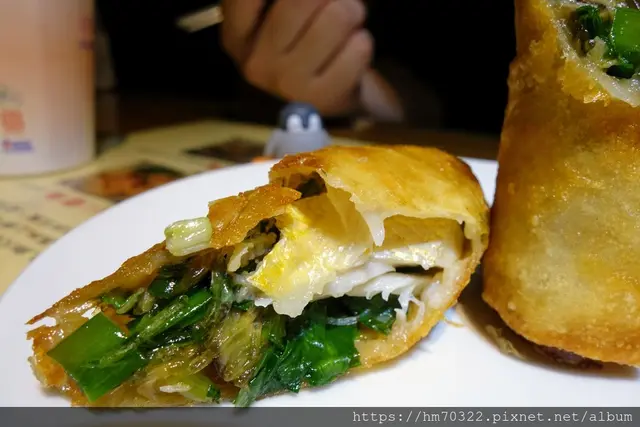 油炸過的春捲咬下去"卡滋、卡滋"的,接著內餡的味道接續散發出來