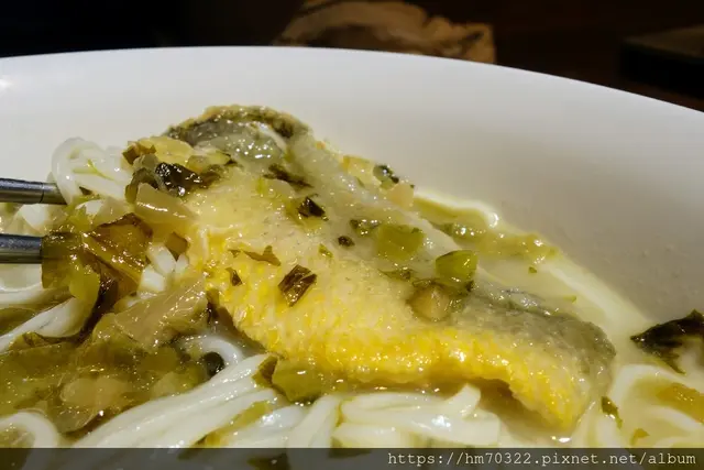 經由其他食材的輔助魚肉感覺成為了主角,讓鮮甜的味道中帶微酸氣味,雖然湯頭基底相當厚實,但這樣的食材組合不會讓人覺得負擔太大