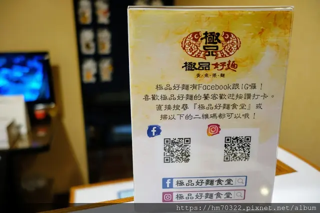 想知道極品好麵的相關資訊嗎?記得掃下圖的QR CODE追蹤店家IG和FB粉絲團喔!