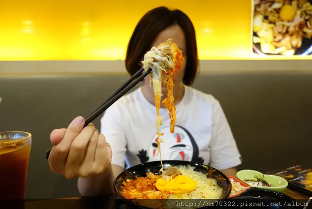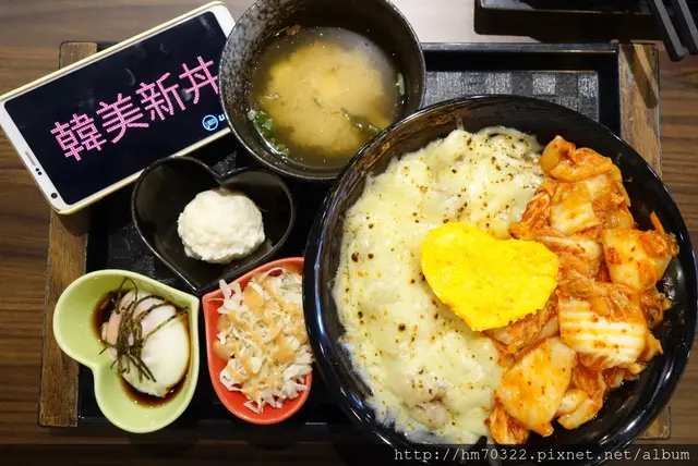 韓美新丼=美式新丼+韓式新丼,一個蹦出新滋味的餐點,可能老闆吃到韓式起司鍋得來的靈感吧