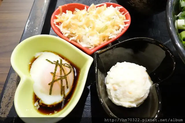 丼飯上頭那顆一定要加的雞蛋,店家就幫忙做成熟的囉,有發現嗎?它是【愛心形】的耶…不只店名叫心動,菜色的小巧思也讓人心動…so sweet!