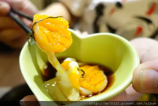 一顆黃色的物體,它是…它是…它是…雞蛋啦!有些朋友不敢吃生雞蛋(例如:小胖),所以點餐時服務員有特別詢問
