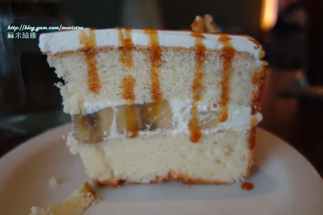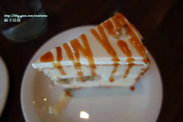 戚風蛋糕上面淋太妃糖及鮮奶油,看似甜膩~但一點也不會喔,味道剛剛好