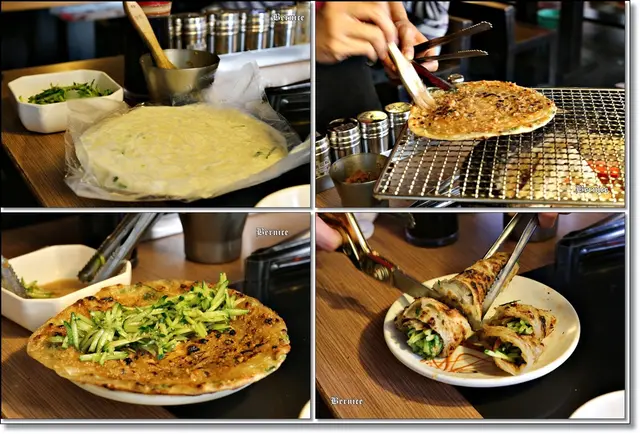 餅皮先烤得香酥在抹上味增烤醬再加上小黃瓜
