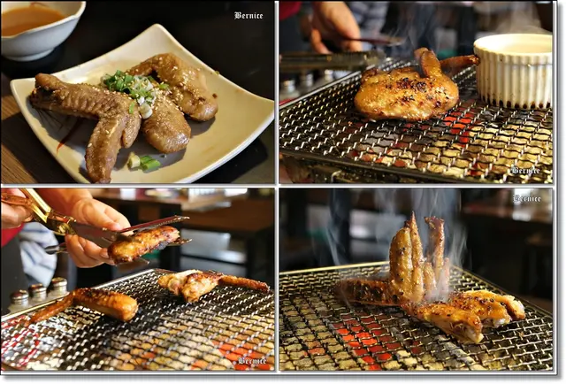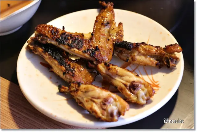 滷製過的雞翅烤的金黃,服務小姐再用剪刀將中間的骨頭剪開