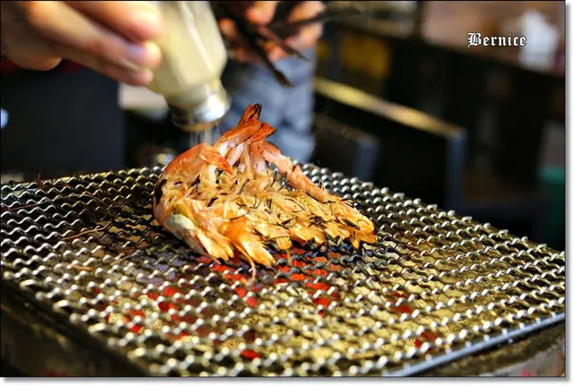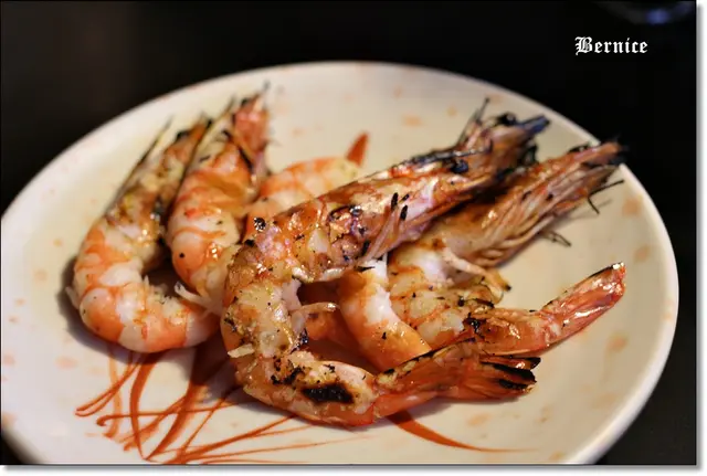 新鮮的白蝦,一面面的烤熟,灑上椒鹽