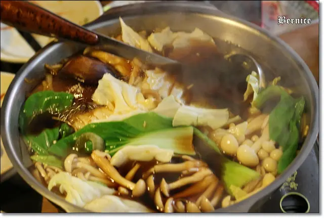 一大盆的綜合菇加上蔬菜(湯頭口感有點甜,我不是很愛)