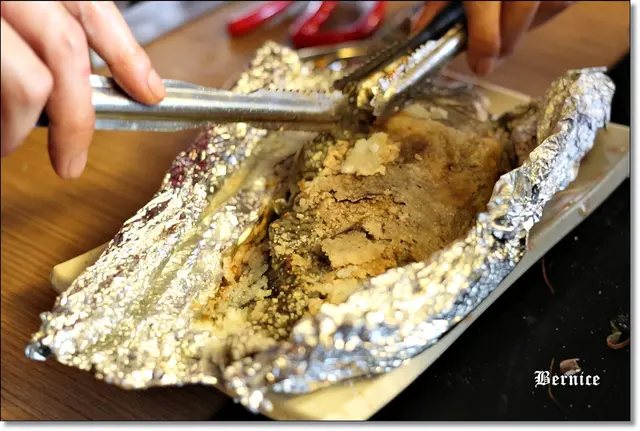 一整條的吳郭魚抹上粗鹽包上錫箔紙