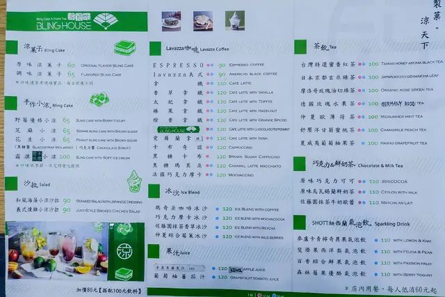 涼食帖 以涼菓子為主 另外還有 沙拉 輕食 咖啡 果汁 茶品等