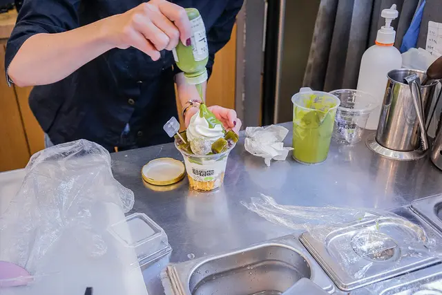 宛如綠色瀑布的抹茶醬緩緩從雪白霜淇淋上流下 這畫面太美 我一直看很久