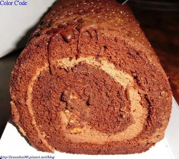 蛋糕柔嫩鬆軟味道香甜中帶點巧克力微微的苦味與淡淡的酒香味 ,