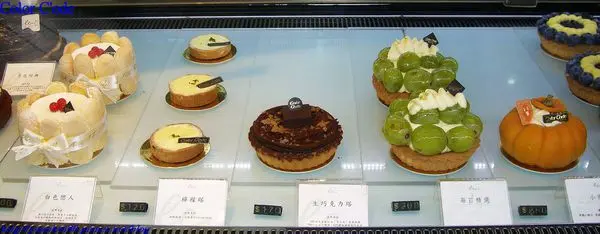冰櫃內的各式各樣的精緻蛋糕讓人眼睛為之一亮~
