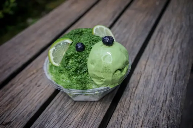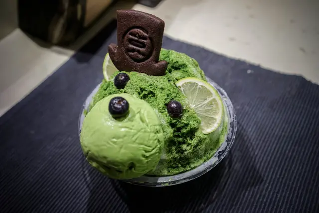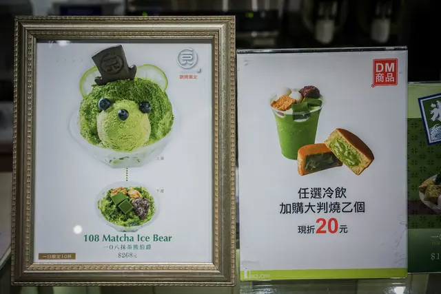 耶!是熊熊!我就是來吃這一份冰品的,經過看到眼睛一亮直接掏錢購買,不過一碗268元我認真覺得比金箔冰淇淋來的好吃太多了,我覺得消費者是會判斷的,雖然兩種冰品性質不同,但一樣都是解暑氣用,我個人比較偏向抹茶冰,好吧,我就是直接了點,不過我真的不想對食物說謊『大離題』,另外現在只要點抹茶飲品就可以以20元加購抹茶大判燒『不限口味』任選一個喔。