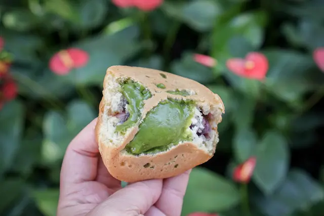 這應該是我第一次吃抹茶大判燒,餅皮是原味的口感偏Q彈,不過店家已經事先做好,只會在稍微加熱,所以我覺得外皮有點小可惜的不夠熱,裡面是紅豆抹茶卡斯達奶油乳酪,一整個嘮嘮長的名字ㄟ,抹茶苦甜萬丹紅豆甜而不膩,不過我不愛紅豆,倒是卡斯達奶油乳酪的鹹香讓我很喜歡,而且口感比較奶,也不會覺抹茶配紅豆這組合很無聊。