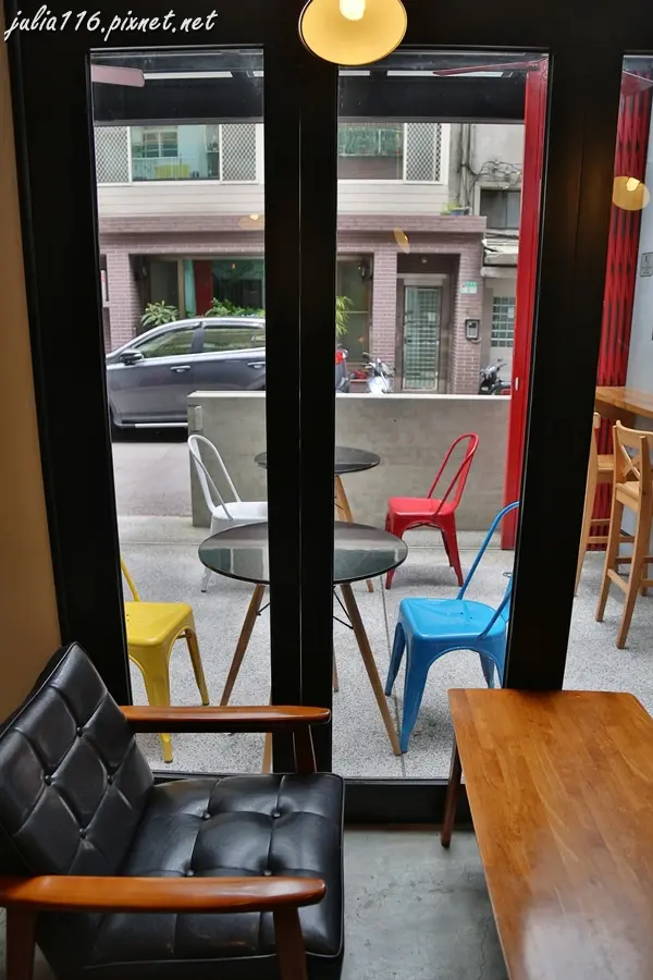 咖啡館的極簡設計風格很難讓人忽略,一輛可愛機車停在門口,意外成為照片裡的風景,有畫龍點睛的感覺