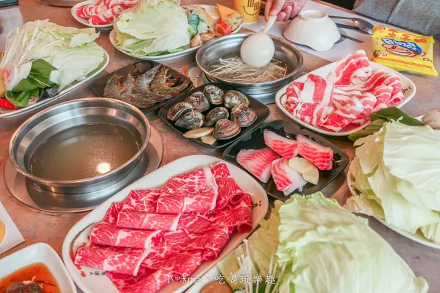 老公點了海陸雙拼,海鮮類有鯛魚、蛤蜊、鮮蝦任選一,肉品就是沙朗牛、梅花豬、雪花羊任選一,老公選了蛤蜊+沙朗牛,不誇張,他的蛤蜊真的超級大顆,來川田涮涮鍋點蛤蜊就對了,每一顆都比50元大喔