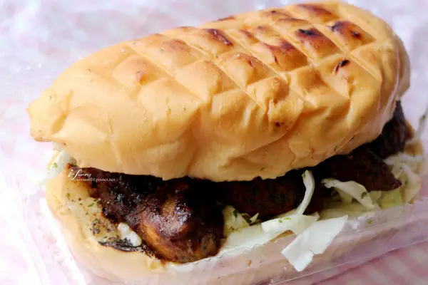 辣醬味道沒有很辣,加上裡頭美乃滋的中和後,甜味較明顯,口感是比較濕潤的,
