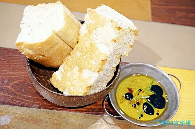 麵包是這裡的廚房自己做的,鬆軟又有麵香,沾油醋吃很棒。
