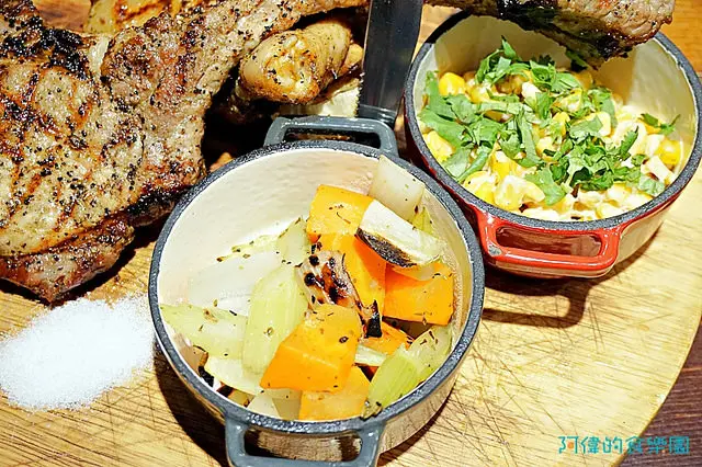 盤上兩碟烤蔬菜也非常好吃,特別是烤玉米,裡面還拌了美乃滋、檸檬汁、辣椒粉,以及香菜,超級甜又帶有點辛辣!必吃!