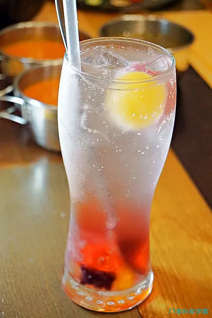在杯底放了好幾顆小熊軟糖,漂浮在杯口的黃色是芒果冰磚,整個口感清甜有果香,蠻不錯的!